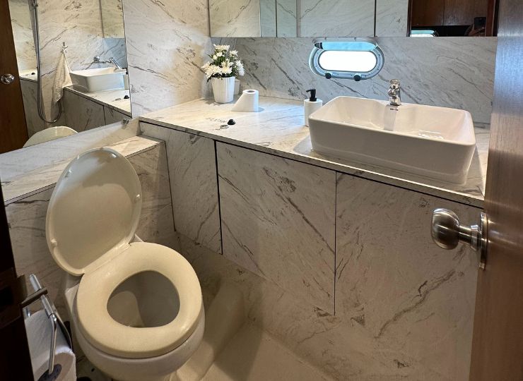 The interior spaces of the ARC 55 are designed for utmost comfort and luxury. Lavish staterooms provide a serene retreat for relaxation, and the expansive living areas are thoughtfully furnished with top-tier materials and state-of-the-art entertainment systems, creating an inviting atmosphere for guests.