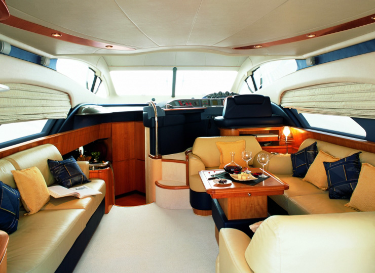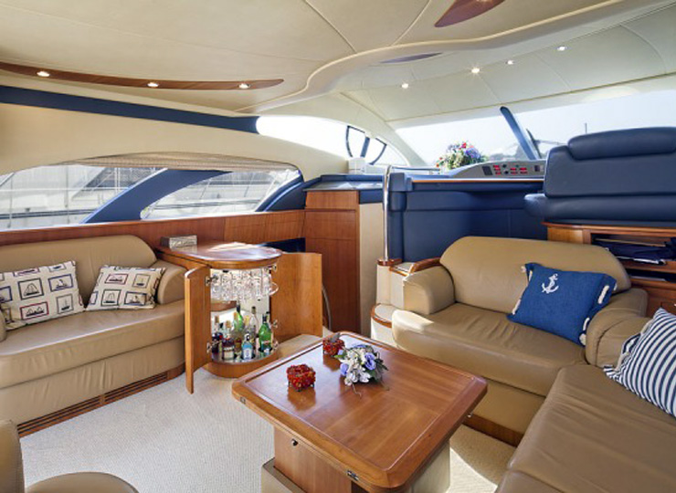This Azimut 50 luxury charter yacht has a huge sunbed on the foredeck, and ample lounge areas on the flybridge - perfect for sunbathing on your sailing cruise.The spacious salon area on this Azimut 50 luxury yacht has a state of the art entertainment system, along with generous eating and seating facilities, perfect for relaxing with a movie after your meal. Azimut 50 luxury yacht is the perfect yacht for an extended sailing cruise around Mumbai.