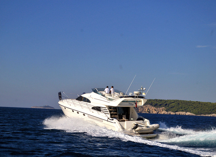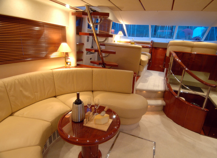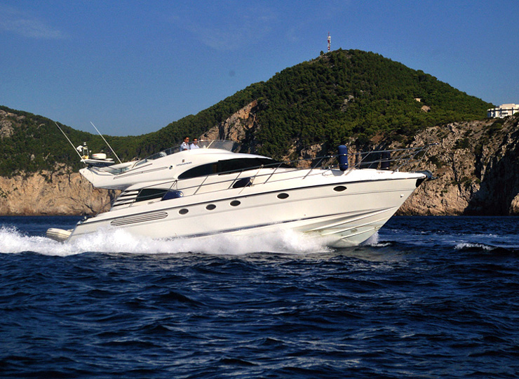 Luxurious motor yacht Fairline Squadron 55 is ideal for cruising around the coast The yacht disposes with 3 cabins , large, spacious entertaining areas, extensive saloon and upper deck areas, private staterooms. The yacht is created using only the very finest materials, including exotic woods, hand selected granite work surfaces and state of the art design features. In the saloon enormous panoramic windows enables you to enjoy in the stunning view on the clear blue sea, untouched islands and coast. The comfortable, luxury motor yacht Fairline Squadron 55 will not leave you indifferent.