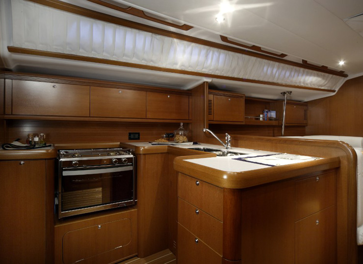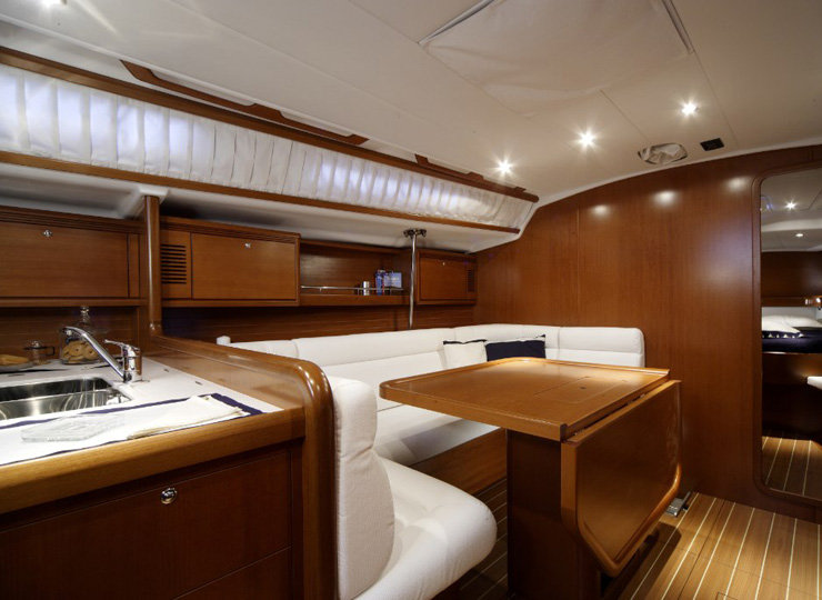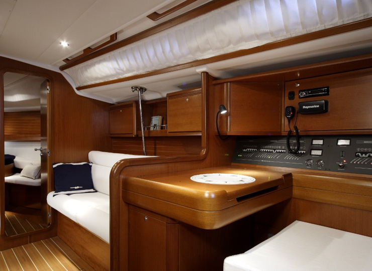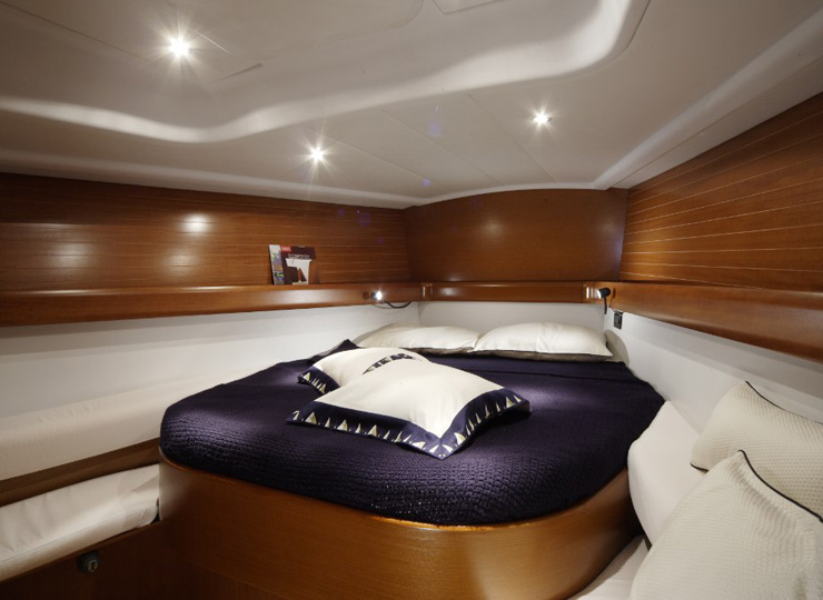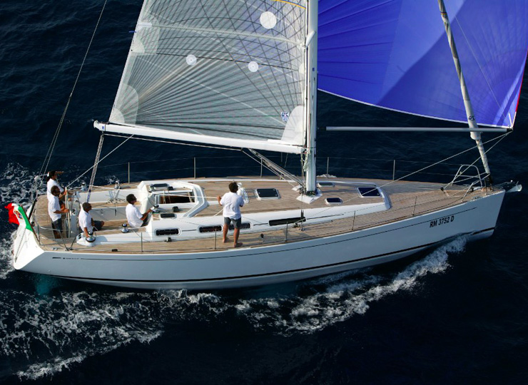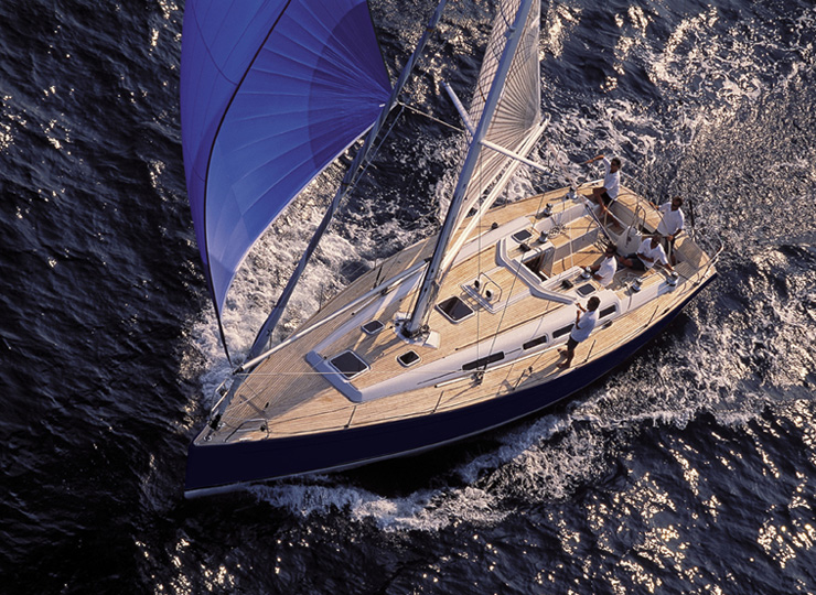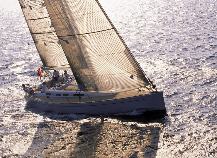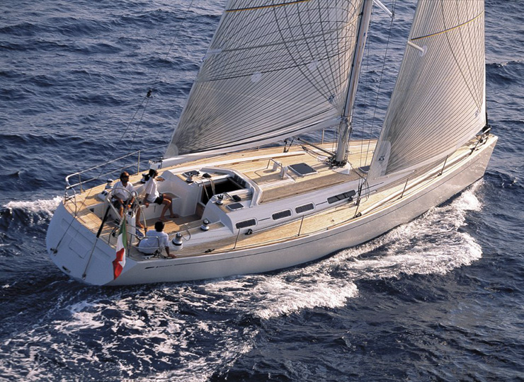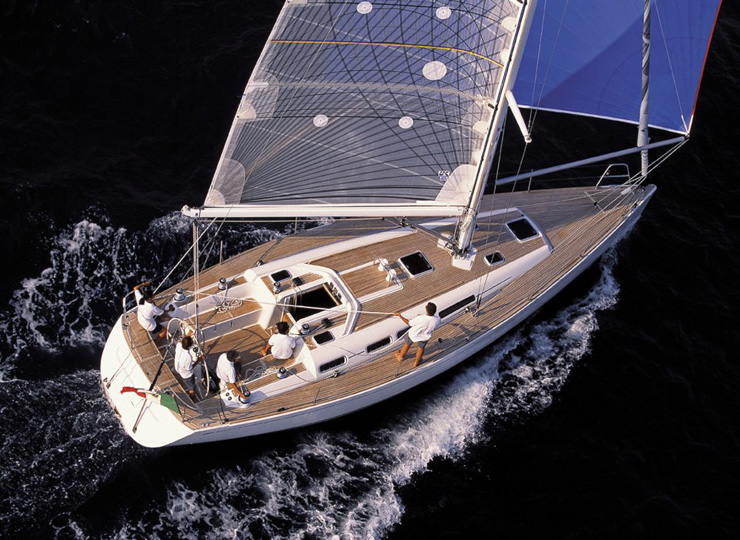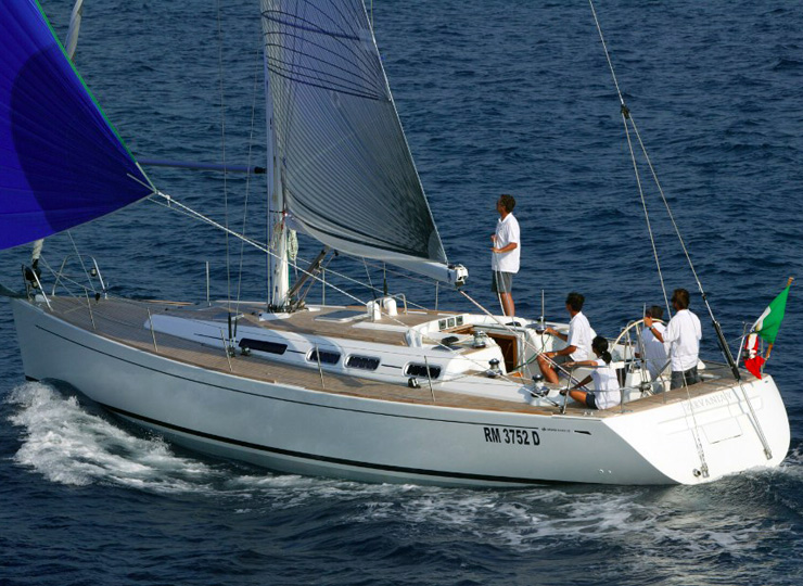 The Grand Soleil 45 is a high performance sailing yacht that sails well in both light and strong winds, showing her strength and solidity from the quality structure. This yacht optimizes the best in sailing performance, with her pure lines and internal spaciousness. She is an exceptionally comfortable and fast sailing yacht. The cabin proportions are unusually roomy for such a fast yacht, with a traditional L-shaped galley, large nav station and twin heads as standard. She provides maximum safety and is fully equipped giving her generous safety margins.