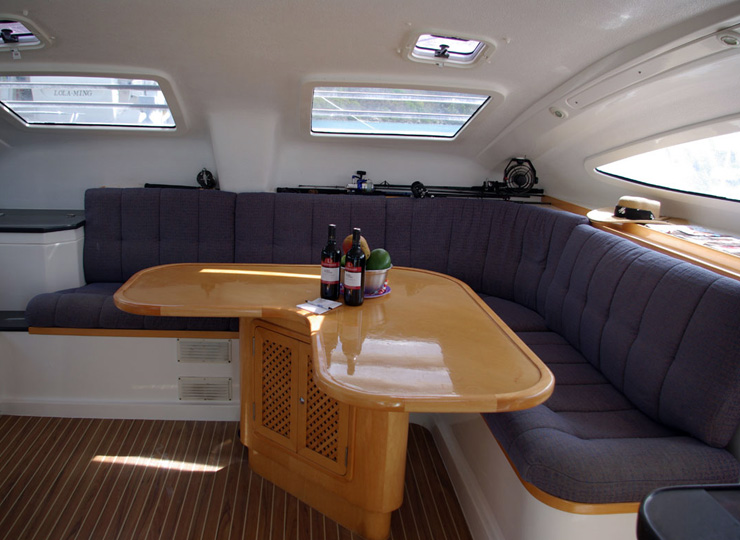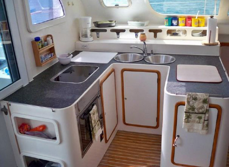 The ISLAND SPIRIT 401 was designed with maximum space and comfort in mind to make the sailing experience one of enjoyment. It affords the guests luxurious accommodations and spacious entertainment areas while being functional and practical at the same time. The saloon with it's opening port lights is airy and spacious with a 360 degree panoramic view.
