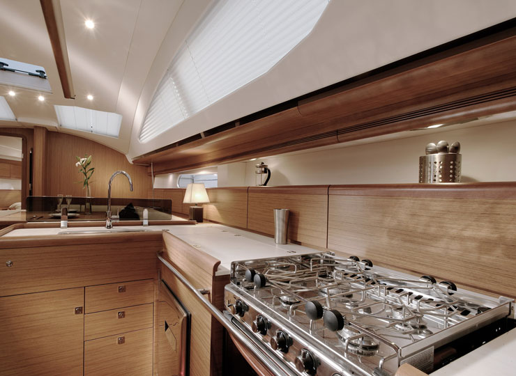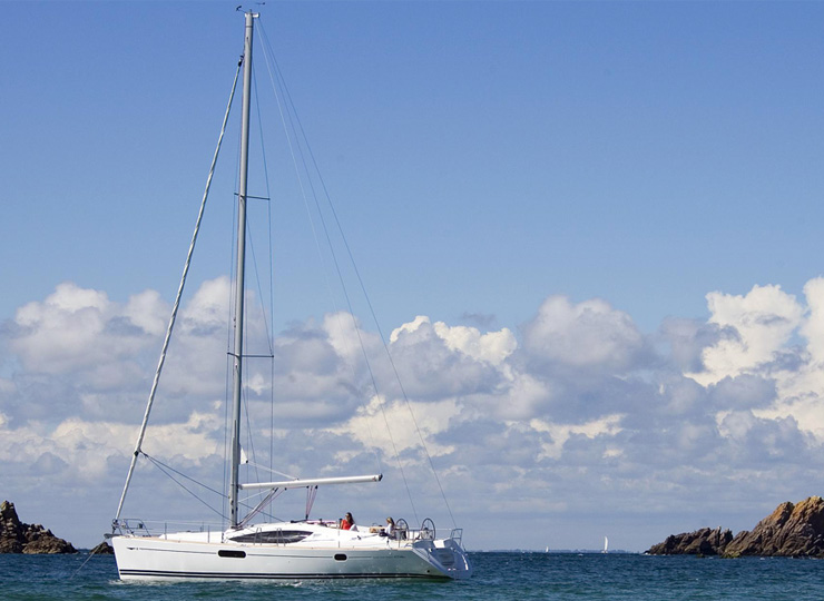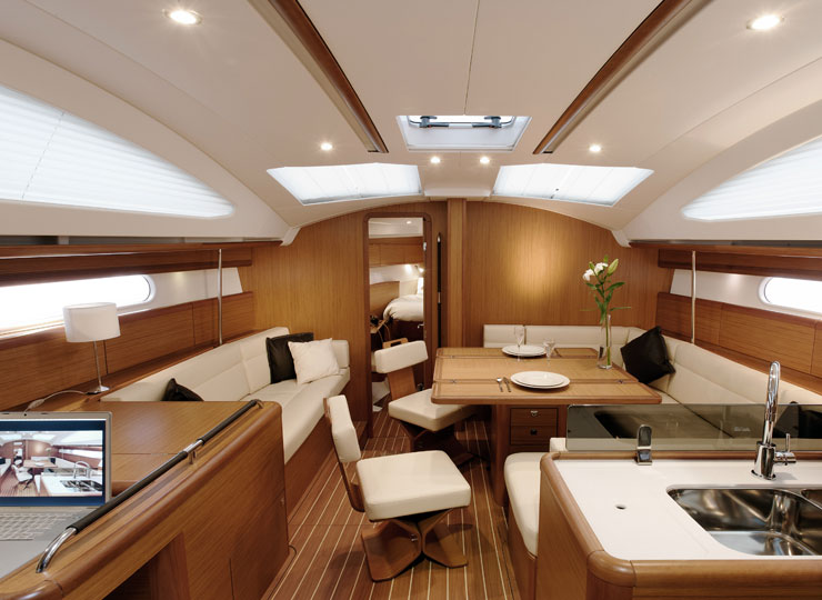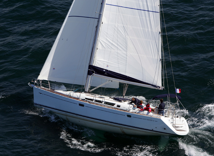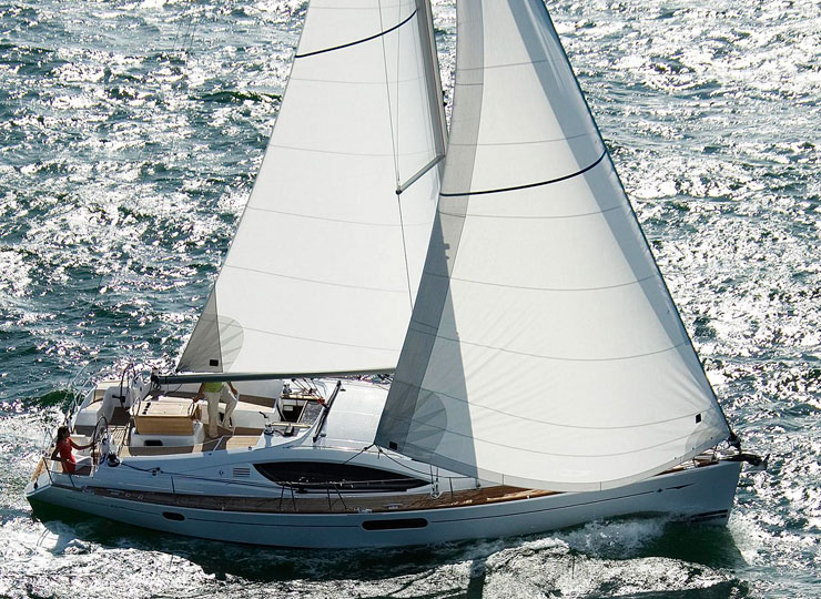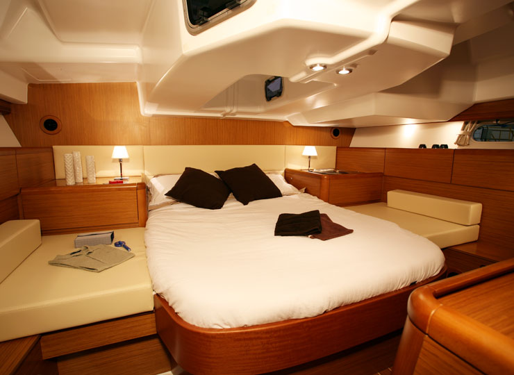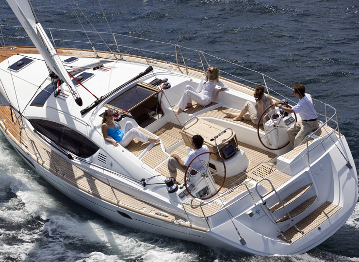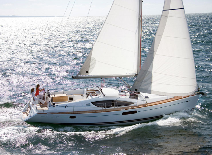 The Jeanneau 45 is a cruising sail boat with nautical elegance to optimize the performance under sail and under power, but also to maximize the interior volume for the various interior layouts. The vast saloon combines a lounge and dining area, with a choice of a fixed bench seat. The spacious galley with ergonomically integrated functions creates a harmonious atmosphere.The luxury Jeanneau45 yacht comes with 4 beautifully designed double cabins and 2 toilets.The ergonomically designed sallon as well as beautifully designed cabins can accommodate up to 12-15 persons. So Jeanneau 45 is ideal for luxury sailing, boat rentals or hire yachts to sail on high seas.
