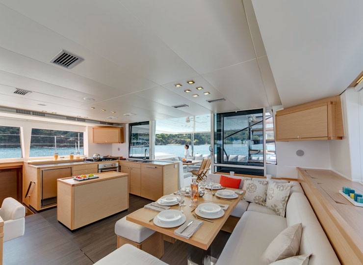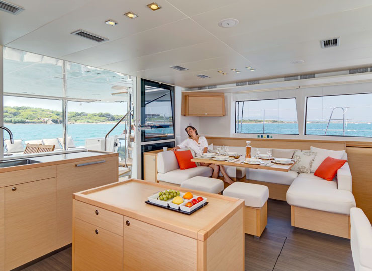 She is equipped to the highest standards and will meet or exceed your vacation and relaxation expectations. She is entirely air-conditioned, luxuriously furnished with four double spacious, full of light cabins with queen size berths,sea toys and all equipment imaginable. Her crew, skipper and hostess/deck hand will assure your safety, comfort and enjoyment. If you want a well built, high performance catamaran, then the Lagoon 560 is one of the best on the market today. This luxury cruising catamaran is an innovative and more luxurious range of all, with a large functional and yet elegant interior.Lagoon 560 catamaran with four cabin design is very accommodating. The main deck has three different areas. The front has ample views of the water, the main salon has the galley, as well as the dining area, the covered aft section opens to the back, and this also gives you access to the rear swimming platforms. The cockpit deck is completely open, with large seating and lounging areas, providing you with a panoramic view.